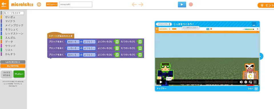 (ただ、1つのウィンドウ内でマイクラッチのプログラミング画面と解説動画が収まるようになり、かなりやりやすくなっています!)